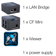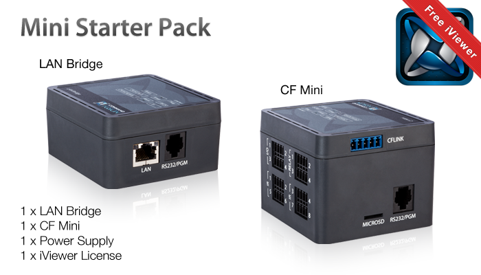 The CF Mini provides all of your control connections, while the LAN Bridge provides an Ethernet connection to allow for control from mobile devices. Packaged with a single license of CommandFusion iViewer to allow you to create a custom GUI to suit your installation requirements for control via iPad, iPhone, Android.