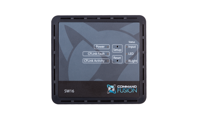 The SW16 is used to interface physical buttons to the CFLink network. With 16 x Dry contact inputs, you can connect up to 16 momentary or toggle switches to control your automation system. The 16 channels of dimmable LED outputs allow you to show feedback states for the buttons, and 4 dimmable backlight LED outputs can be used to backlight your keypad if required.