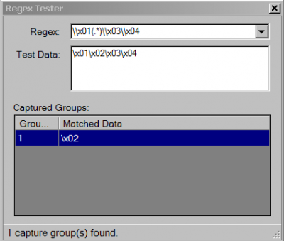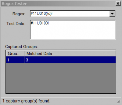 To use, just enter the regex and the test data in the respective sections. If the regex matches, the parsed data according to the capture group and matched data will be shown in the list. If not successful, check the status bar of the regex tester for a message.