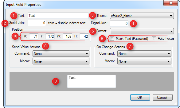 This window will show the preview layout and position of the displayed text of the input field.