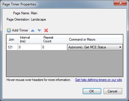 Timers can be used as entrances where the command or macro only fires once, or can be set to fire a specific number of times when the page is accessed, or can run continuously until the page is exited or the subpage is hidden.