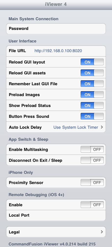 So if you come across any problems with the GUI File not reloading even if you have 'Reload GUI File' enabled, most likely the app is not being closed between each launch but just running in the background. Disable multitasking to force iViewer to close fully each time you press the home button.